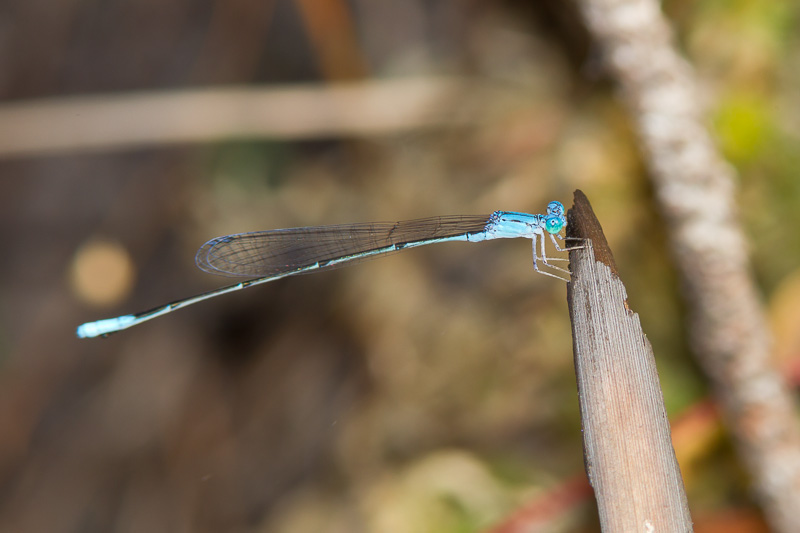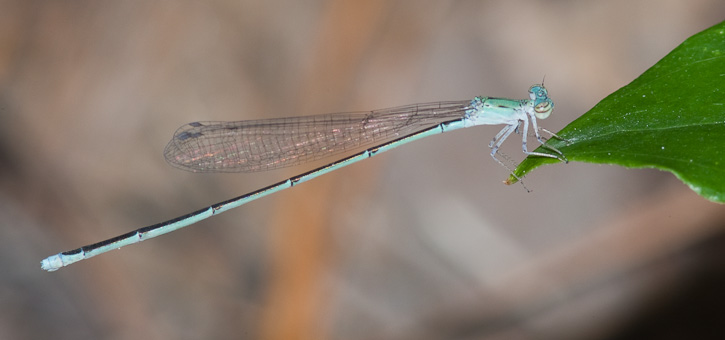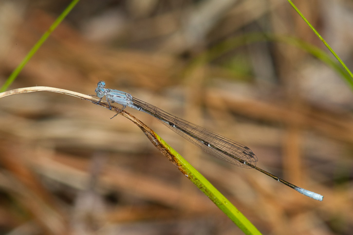 | The next 2 images show a male and a teneral female Attenuated Bluet in Jasper Co., Texas in early April, 2010. These images were taken with a Canon EOS 1D Mark IV and an EF 300mm F/4 L IS lens and 2X extender and 580 flash. | ![]() |