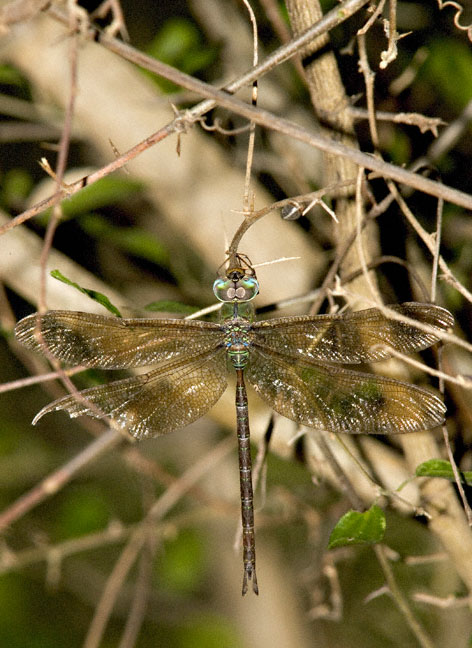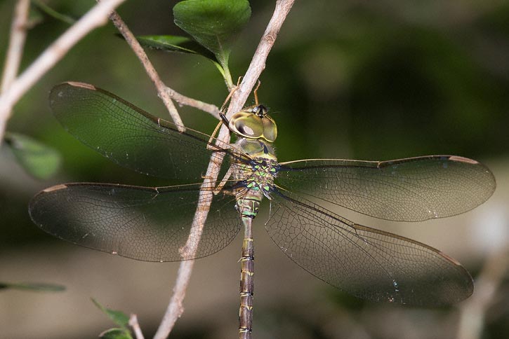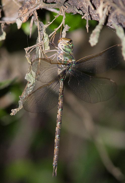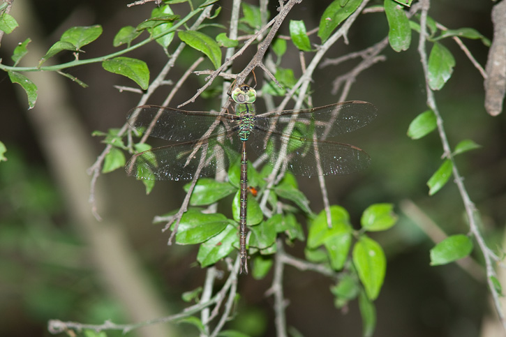 | Since the two images above, The Bar-sided Darner has proven to be more common than initially thought. Some observers have found as many as 15 to 20 hanging up in a relatively small area in the late summer. In September, 2008, I spent some time at Santa Ana N.W.R., with Dennis Paulson, the Dauphins, Tom Pendleton and others and we saw perhaps a dozen individuals over a 3 day period. The next 8 images were taken in September, 2008, with a Canon EOS 1D Mark III and EF 300mm F/4 L IS lens and 2X extender and 580 EX II flash. |