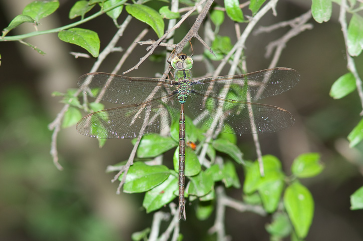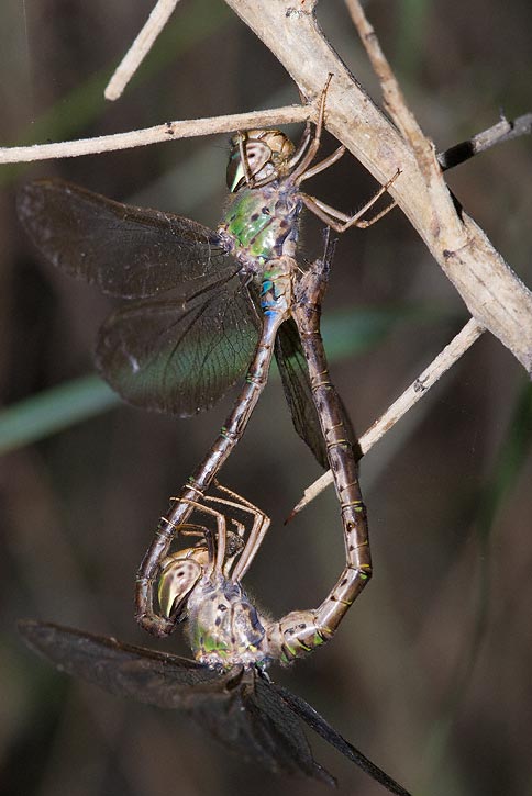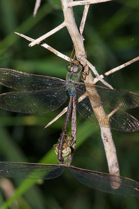 | The pair of Bar-sided Darners in copula shown here and in the 2 shots just below were at Santa Ana N.W.R., Hidalgo Co., Texas, in October, 2008. These shots were taken with a Canon EOS 1D Mark III and EF 300mm F/4 L IS lens and 2X extender and flash. |