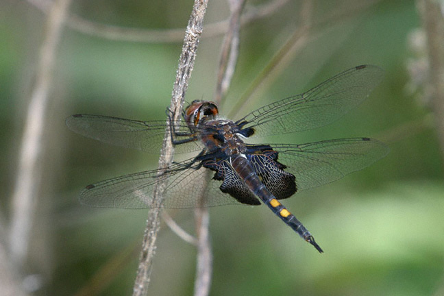| The next 4 shots of Black Saddlebags were taken near Millwood Lake in Howard Co., Arkansas in September, 2007, with a Canon EOS 1D Mark III and EF 300mm F/4 L IS lens and 2X extender and 580 flash. The individual shown here is a teneral, the next two shots show females and the 4th shot down is a male. |