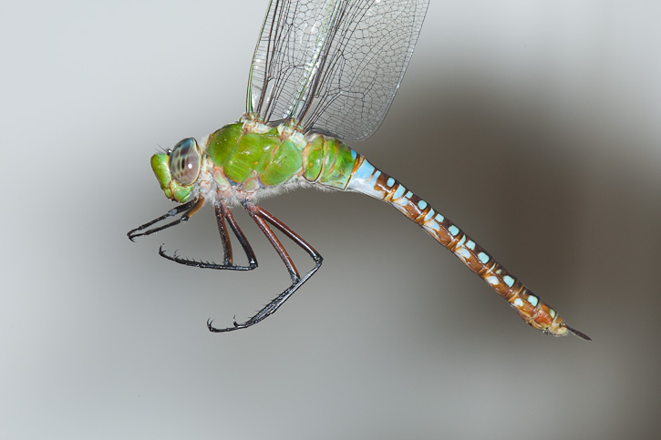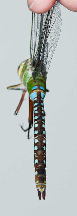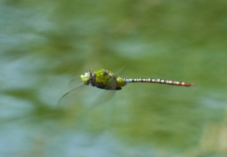 | The Blue-spotted Comet Darner (Anax concolor) was first discovered within the United States by Dennis Paulson in June, 2005, at Santa Ana N.W.R., in Hidalgo Co., Texas. Since that time there have been several other records both at Santa Ana N.W.R., Bentsen Rio Grande State Park, and other far south Texas locations. The first 4 images show a female which was collected by Martin Reid in October, 2008 in Hidalgo Co., Texas. The in flight shot of a male is of poor quality, but serves as a record shot. This image was taken at Pintail Lake, Santa Ana N.W.R., in October, 2009, with a Canon EOS 1D Mark III and EF 300mm F/4 L IS lens. |