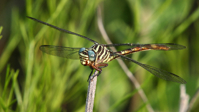 | The female Broad-striped Forceptail here was in Austin, Texas, in August, 2013. | ![]() |