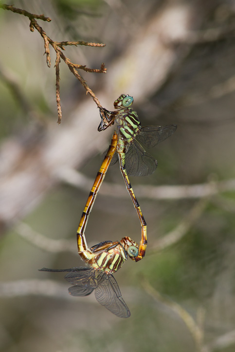 | The next 3 images of a pair of Broad-striped Forceptails in copula were taken in Austin, Travis Co., Texas, in July, 2010. A Canon EOS 1D Mark IV and an EF 300mm F/4 L IS lens and 2X extender and 580 flash was used for these images. | ![]() |