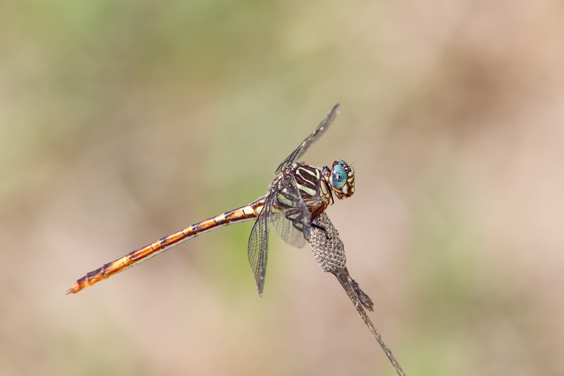 | The young female Broad-striped Forceptail shown here and the male in the next shot were along the Rio Grande in Hidalgo Co., Texas, in June, 2008. These shots were taken with the same photo gear as previously described. | ![]() |