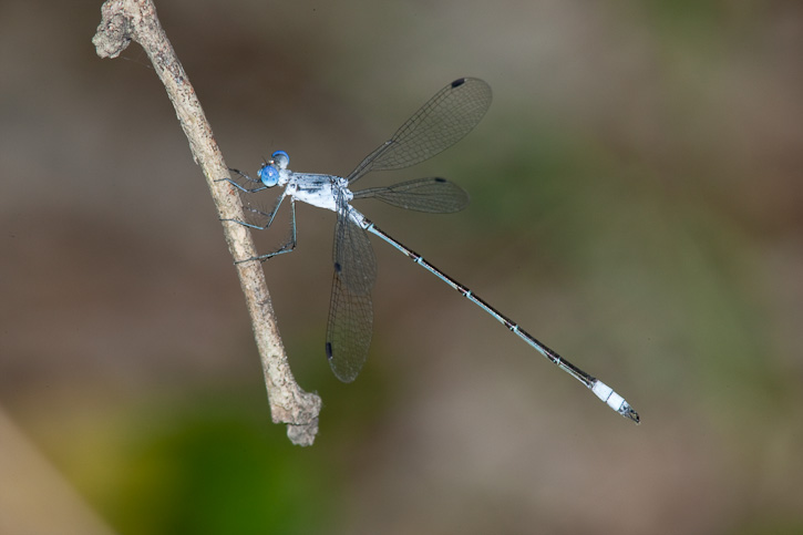 | The next two shots of Chalky Spreadwing show a male at Santa Ana N.W.R., Hidalgo Co., Texas, in February, 2014. | ![]() |