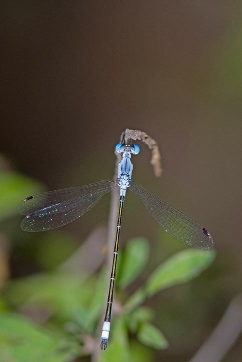 | The next 4 shots of a male Chalky Spreadwing were taken in June, 2008, at Bentsen Rio Grande State Park, Hidalgo Co., Texas. The same gear as described for the previous image was used. | ![]() |