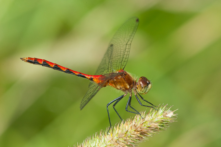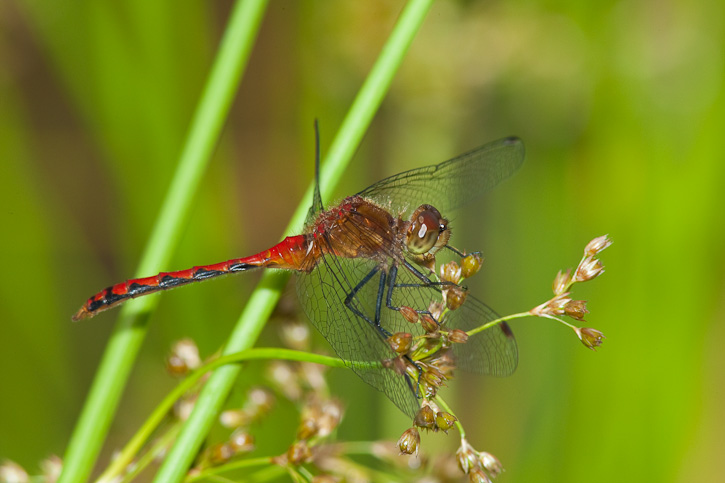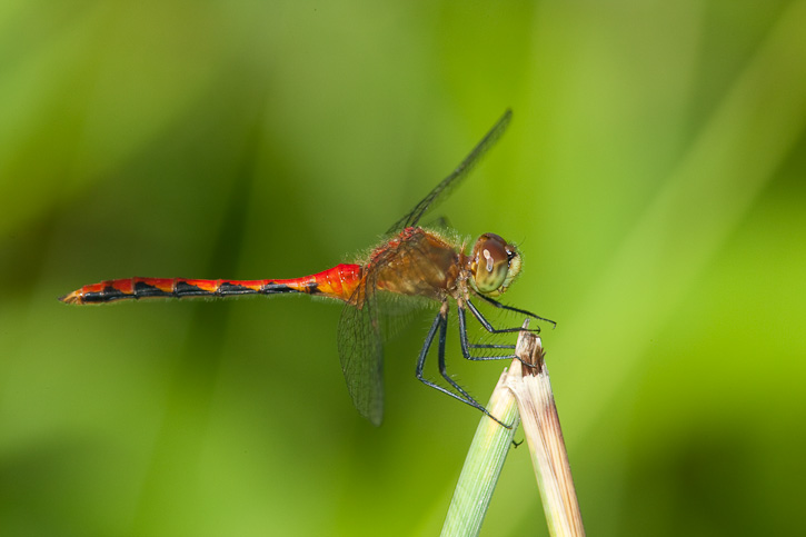 | The next 2 shots of a male Cherry-faced Meadowhawk were taken in Penobscot Co., Maine, in August, 2009, with the same photo gear as above. |
