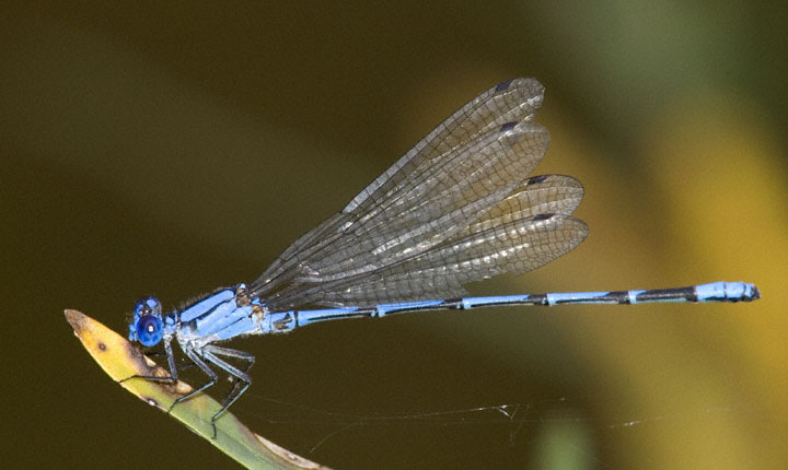 | The Comanche Dancer (Argia barretti) is a fairly common but somewhat local damselfly occurring along rivers in the Texas Hill Country. It also occurs in parts of Mexico. The photo of the male and pair in tandem here were digital captures in October, 2003, on the Guadalupe River near Ingram, Kerr Co., Texas with a Canon EOS D60 and EF 70-200 mm F/2.8 L IS lens with a 2X extender 550 EX flash. |