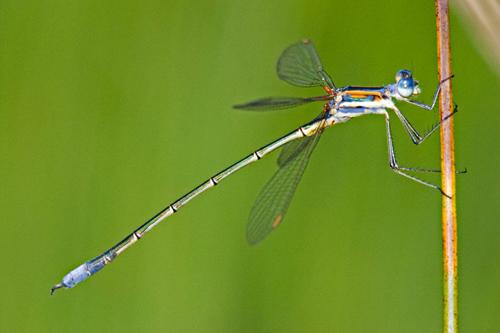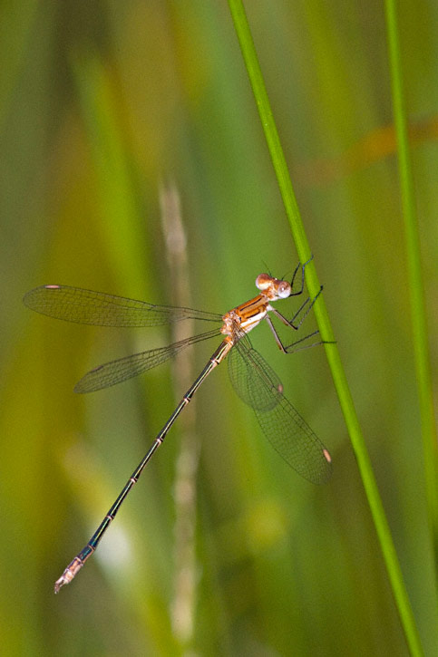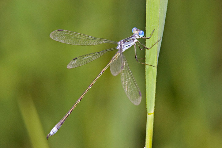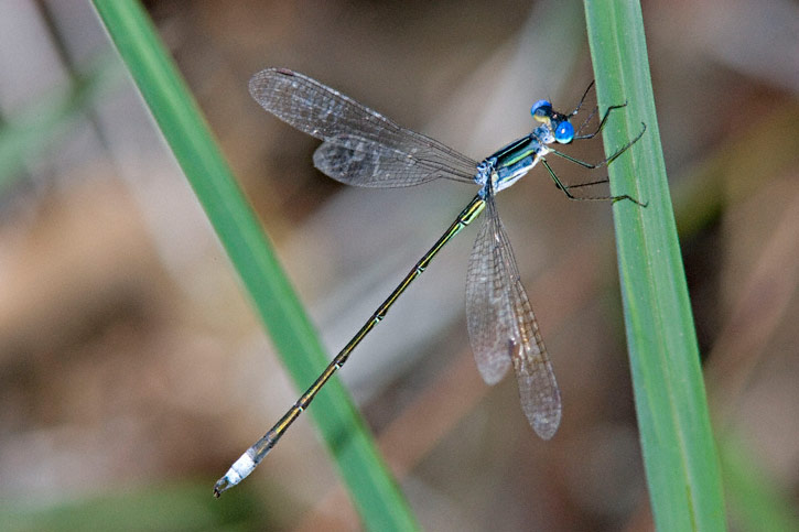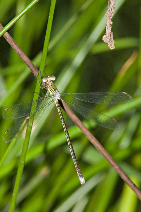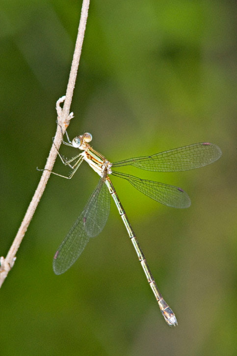 The Common Spreadwing (Lestes plagiatus) is a widespread damselfly of central and southern Africa. It is very common in the northern portions of South Africa and we encountered this species almost everywhere. All the shots shown here were taken in January, 2006, in various locations in Limpopo and Mpumalanga Provinces, South Africa, with a Canon EOS 1D Mark II and EF 300mm F/4 L IS lens and 2X extender and 580 flash. The shots here show both males and females of various ages. | ![]() |