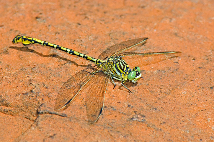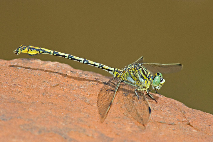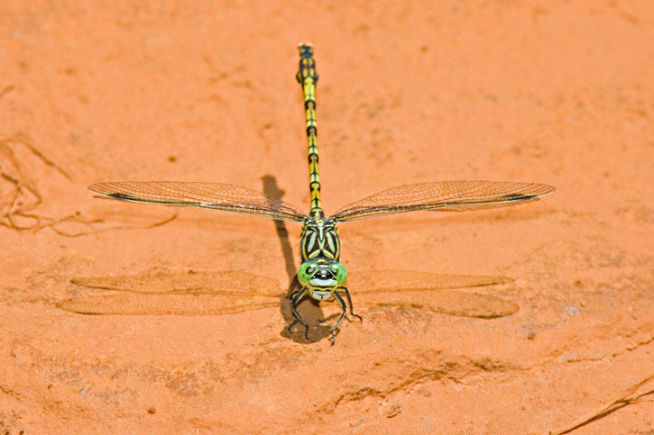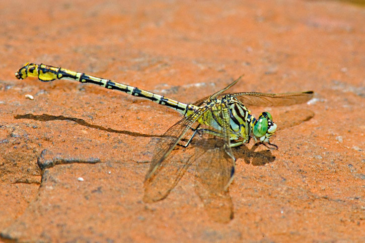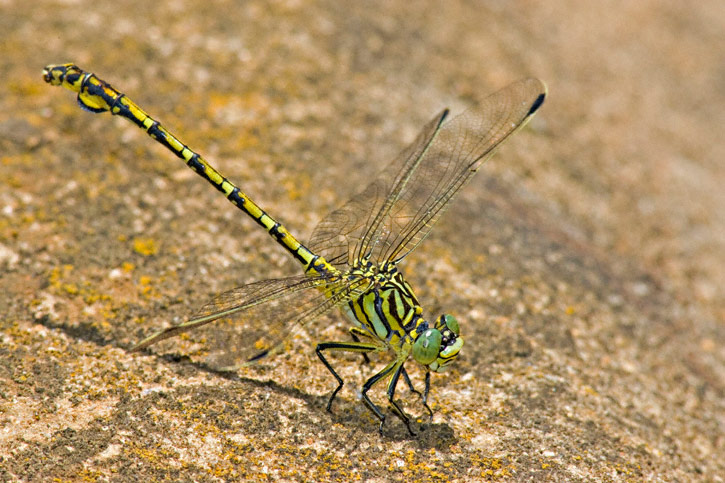 The Common Thorntail (Ceratogomphus pictus) is a widespread dragonfly found throughout South Africa. Its range extends northward to the Congo and Zambia. All the shots shown here were taken in South Africa during January, 2006. The first four shots were at Blyde River Canyon, Mpumalanga Province and the fifth shot was taken along Whisky Creek near Pilgrim's Rest, also in Mpumalanga Province. All shots were with a Canon EOS 1D Mark II and EF 300mm F/4 L IS lens and 2X extender and 580 flash. | ![]() |