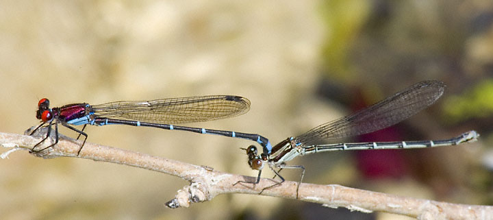 | The next two photos of pairs in tandem were taken with a Canon EOS 1D Mark II and an EF 300mm F/4L IS lens with 2x extender and 580EX flash in Bandera Co., Texas in April, 2005. | ![]() |