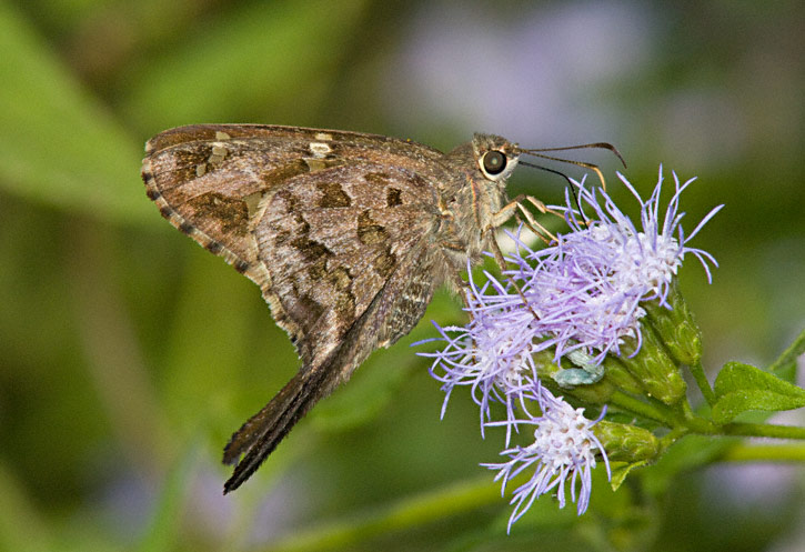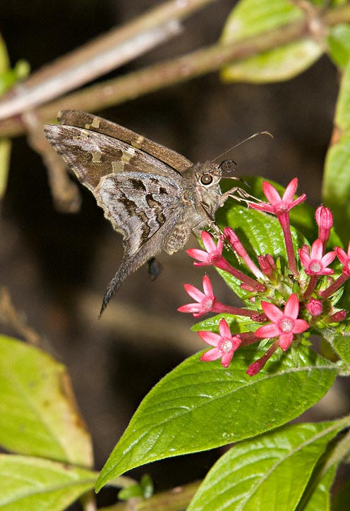 | The Dorantes Longtail (Urbanus dorantes) is a widespread South American and Central American skipper which ranges north to parts of Texas and Florida. The first 3 shots shown here were taken near Pearsall, Frio Co., Texas, in November, 2007, with a Canon EOS 1D Mark III and EF 300mm F/4 L IS lens and 2X extender. | ![]() |