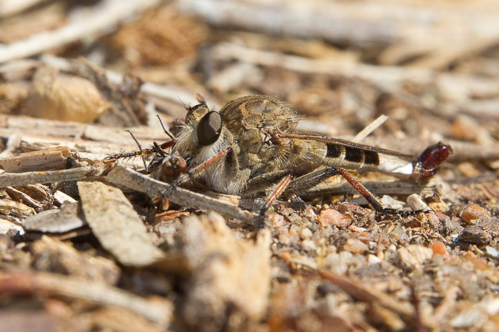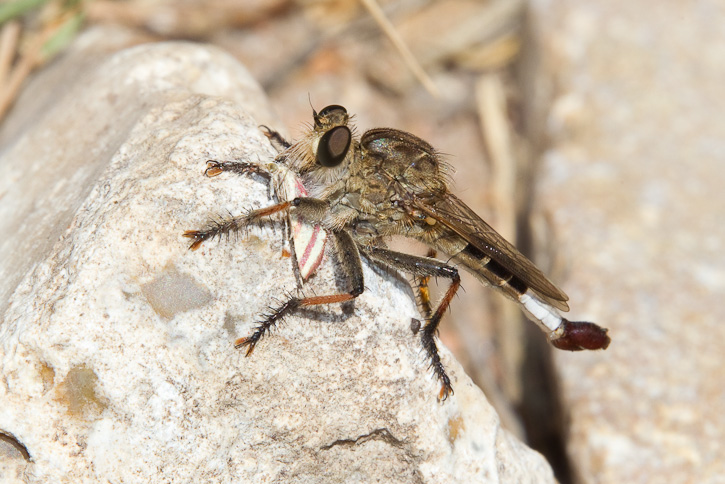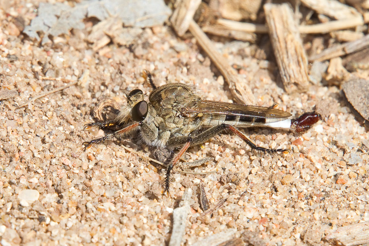 | The robbers on this page are Efferia albibarbis. The one on the right was in Austin, Travis Co., Texas, in June, 2005. | ![]() |