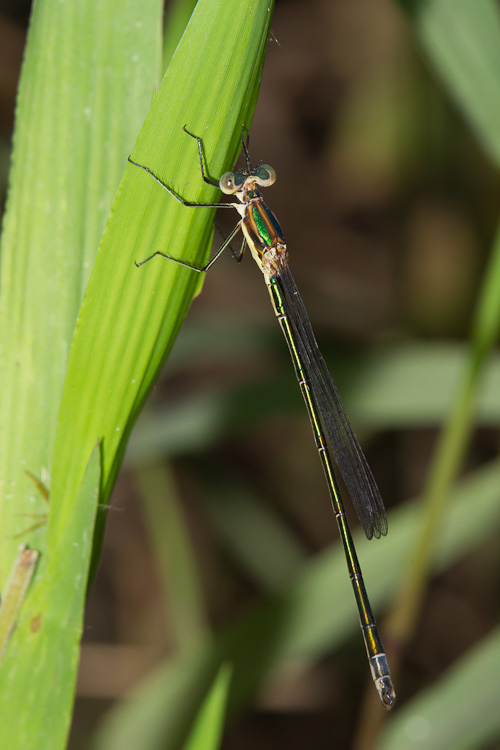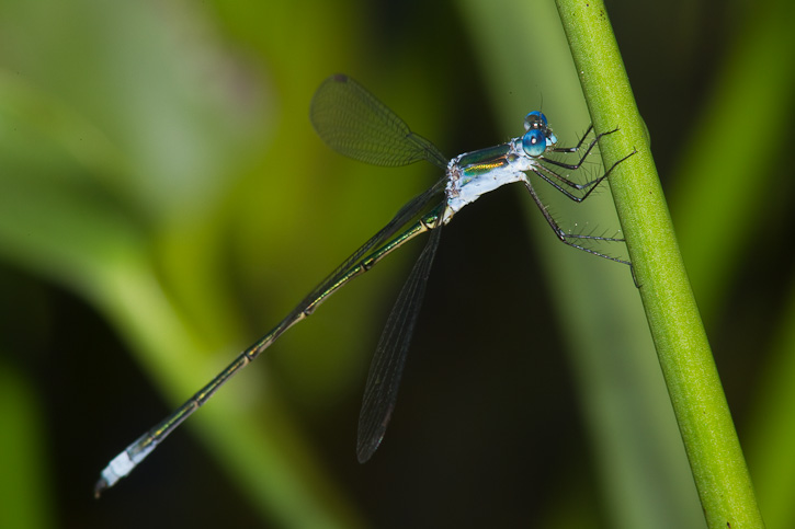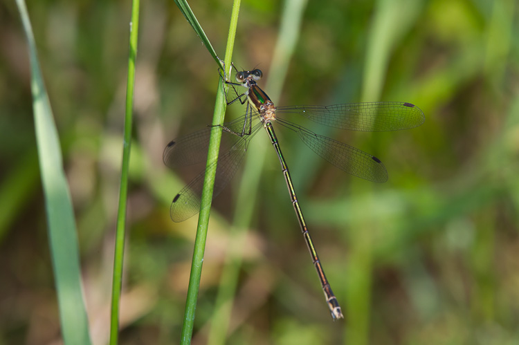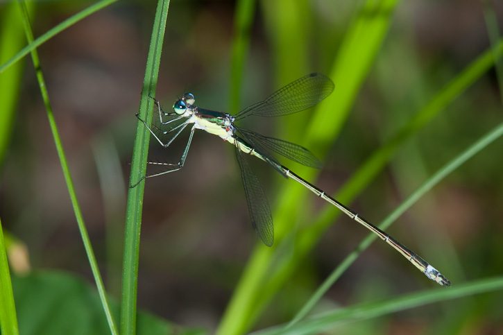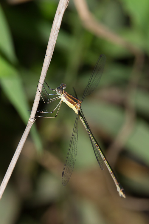 | The next four shots of Elegant Spreadwing were taken at Red Slough WIldlife Management Area, McCurtain Co., Oklahoma, in May, 2011. These images were taken with a Canon EOS 1D Mark IV and a Sigma 50-500mm lens and Canon 580 flash. The first three shots show females. |