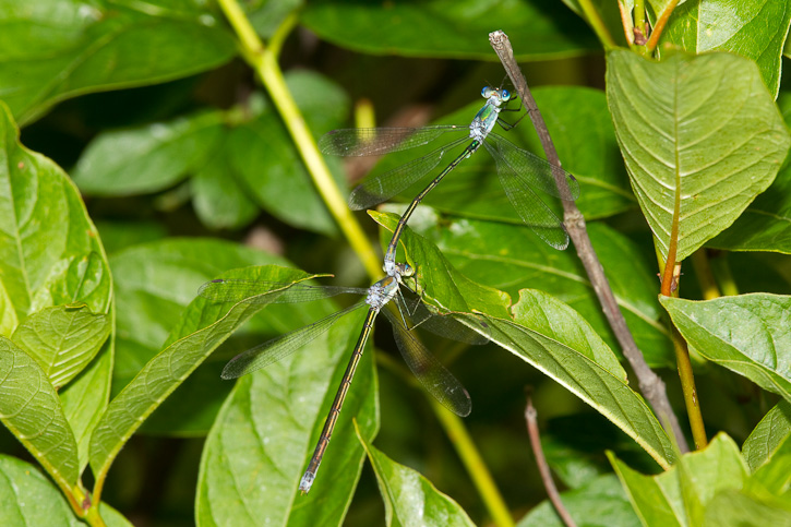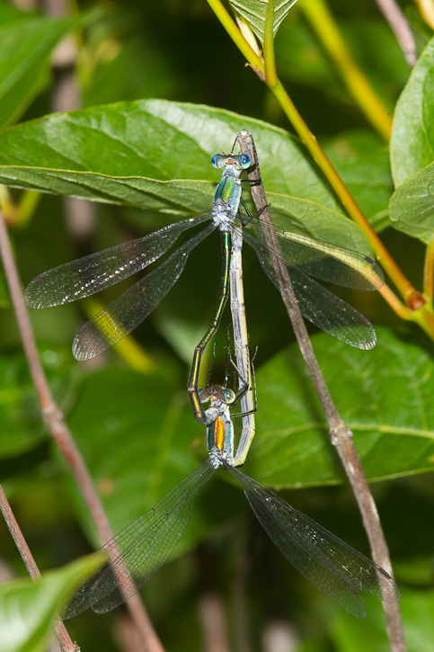 | The young male Elegant Spreadwing on the right has its wings closed. |