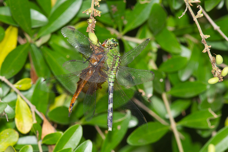 | The female Eastern Pondhawk on the right was at the Lometa Reservoir, Lampasas Co., Texas, in September, 2011. This shot was taken with a Canon EOS 1D Mark IV and a Sigma 50-500mm lens and Canon 580 flash. | ![]() |
