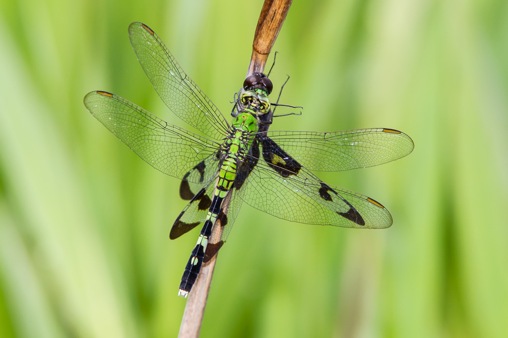 | The female Eastern Pondhawk shown here was just emerged from its exuvia. This image was taken in Austin, Travis Co., Texas, in March, 2010, with a Canon EOS 1D Mark IV and an EF 300mm F/4 L IS lens and 2X extender and 580 flash. | ![]() |