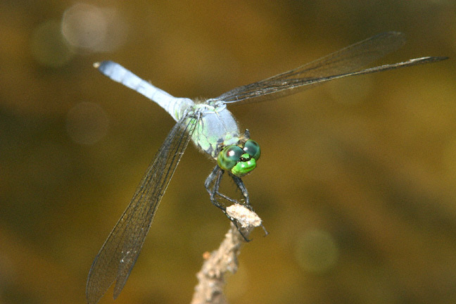 | The young male Eastern Pondhawk shown here is still changing from green to blue. This individual was in the Sam Houston National Forest, San Jacinto Co., Texas, in June, 2009. This shot was taken with a Canon EOS 1D Mark III and EF 300mm F/4 l IS lens and 2X extender and 580 flash. | ![]() |