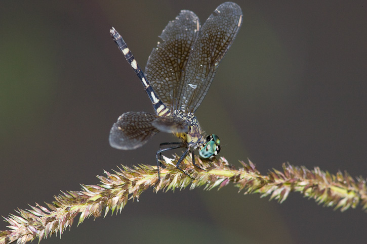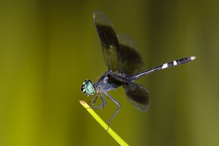 The dragonfly known as Erythrodiplax attenuata is apparently a common and widespread species along large rivers in Peru. We found the species in abundance along virtually any riverbank we visited. The males and females on this page were photographed in July, 2006, along the Rio Sucusari, Departmento de Loreto, Peru, with a Canon EOS 1D Mark II and EF 300mm F/4 L IS lens and 2X extender and 580 flash. | ![]() |