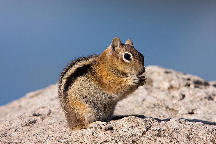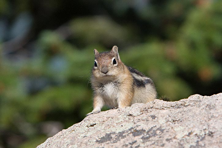 | The next 7 shots of Golden-mantled Ground Squirrels were taken near Breckenridge, Summit Co., Colorado, in July, 2008. These images were taken with a Canon EOS 1D 40D and EF 70-200mm F/2.8 L IS lens. | ![]() |