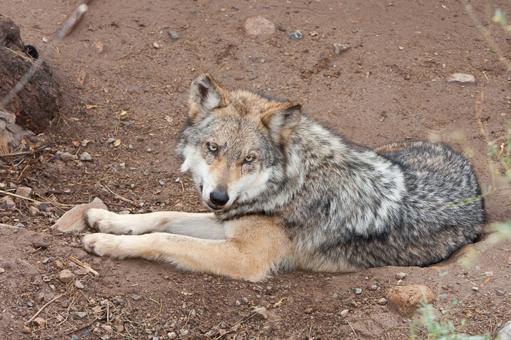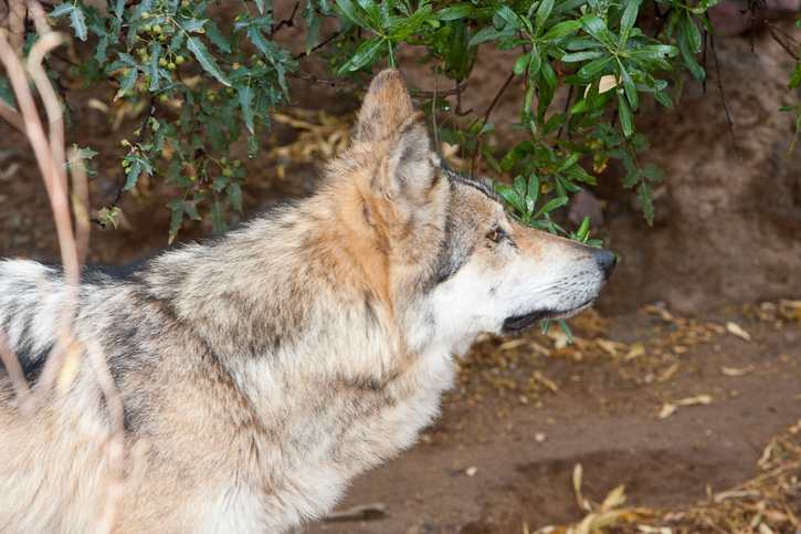| The Gray Wolf (Canis lupus) was formerly widespread over much of North and Central America but its range is now very restricted. The first 4 images on this page show a captive "Mexican" Gray Wolf (Canis lupus baileyi) at the Arizona Sonora Desert Museum in Tucson, Arizona. | ![]() |