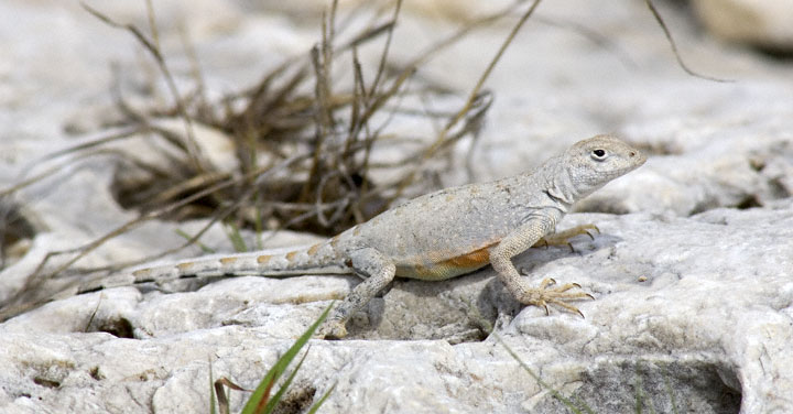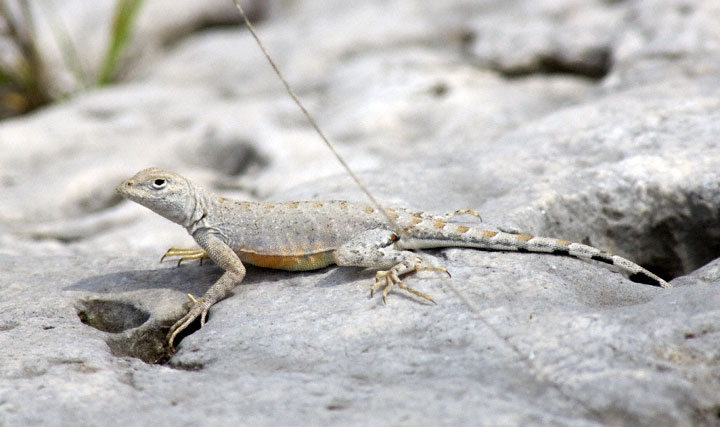 | The Greater Earless Lizard (Cophosaurus texanus) is a widespread southwestern lizard. It ranges across parts of Oklahoma, Texas, New Mexico, Arizona, and southward into Mexico. It inhabits a variety of habitats from desert to some montane scrub. There are several recognized subspecies. The first two photos show what is probably the Chihuahuan or Southwestern Earless Lizard (C. t. scitulus) while the pale form in the lower two shots is probably the Texas Earless Lizard (C. t. texanus). The first two shots were digital captures in the Chinati Mountains, Presidio Co., Texas, in September, 2005 with a Canon EOS 1D Mark II and EF 300mm F/4 L IS lens and 580 flash. The bottom two shots were taken in Bandera Co., Texas, in May, 2005 with the same equipment. | ![]() |