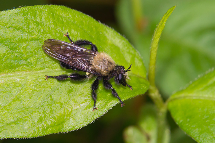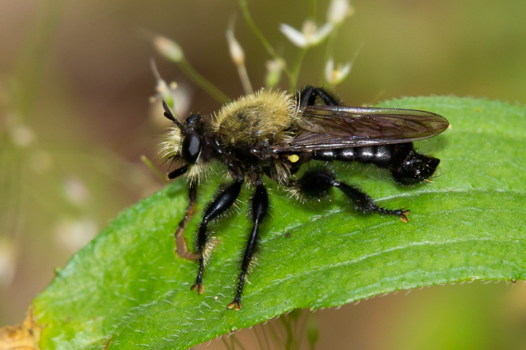 | The robber fly on this page is Laphria flavicollis. The first shot on this page was taken in the Ouachita National Forest, McCurtain Co., Oklahoma, in May, 2011, with a Canon EOS 1D Mark IV and a Sigma 50-500mm lens and Canon 580 flash. Thanks to Michael Thomas and Herschel Raney for this identification. | ![]() |