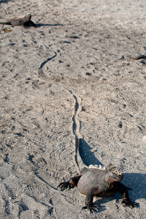 | The distinctive track of a Marine Iguana's tail in the sand. |