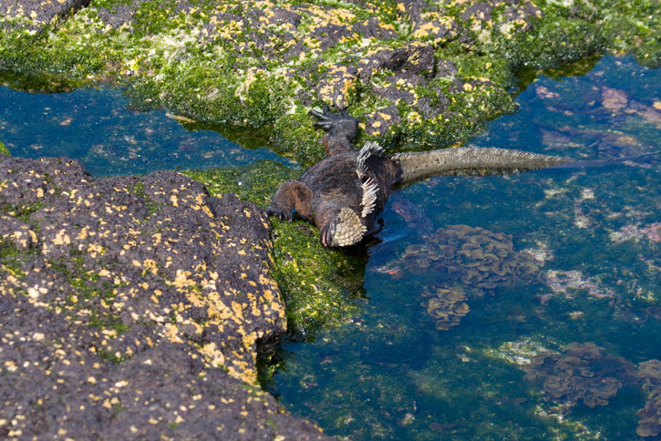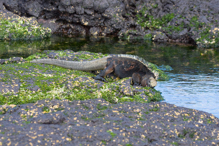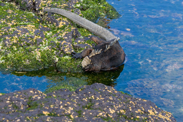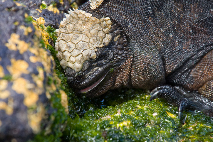 | The Marine Iguana in the 4 shots shown here was feeding on some green plant life on the rocks at the edge of the sea at low tide. |