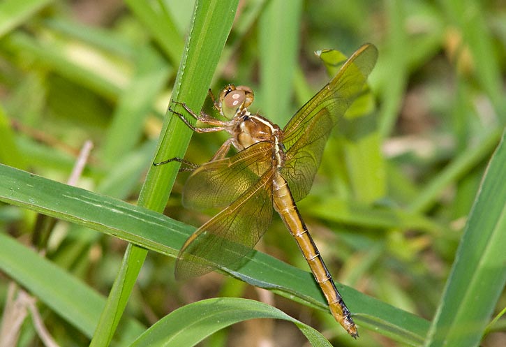 | The female Needham's Skimmer here was shot in May, 2006, in Hidalgo Co., Texas, with the same equipment as the preceding images. This individual is not worn and frayed, in contrast to the preceding shots. | ![]() |