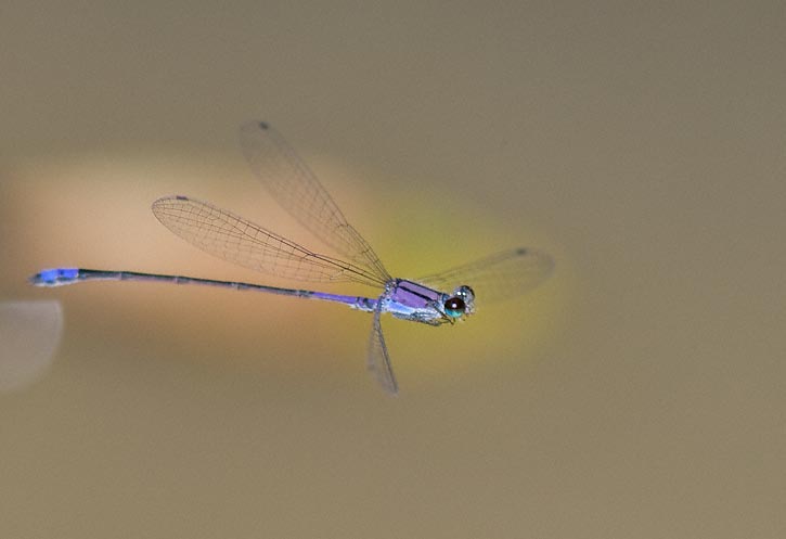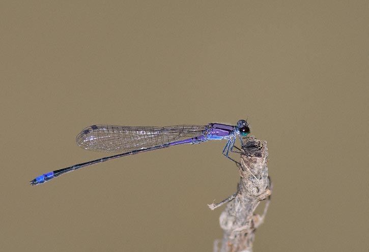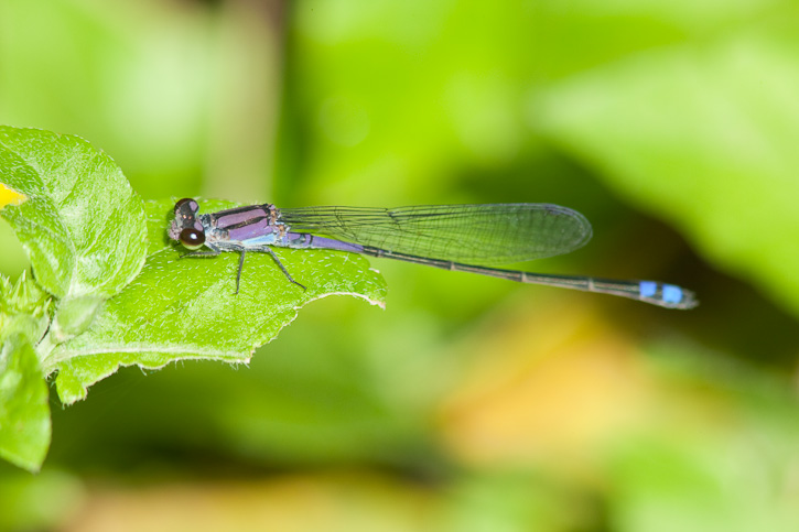 | The next 3 shots of Neotropical Bluet were taken along the San Antonio River in San Antonio, Bexar Co., Texas, in September, 2008, with a Canon EOS 1D Mark III and EF 300mm F/4 L IS lens and 2X extender and 580 EX flash. | ![]() |