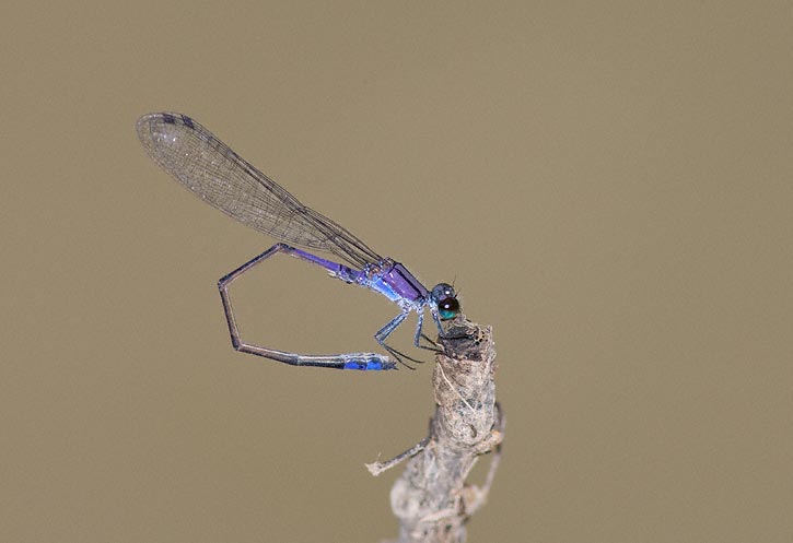 | The next 5 shots show Neotropical Bluets at Austin, Travis Co., Texas, in October, 2009. These images were all taken with a Canon EOS 1D Mark III and an EF 300mm F/4 L IS lens and 2X extender and 580 flash. The individual in the shot shown here and immediately following is a male. | ![]() |