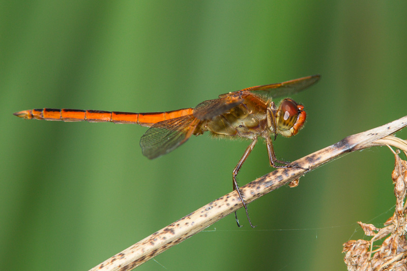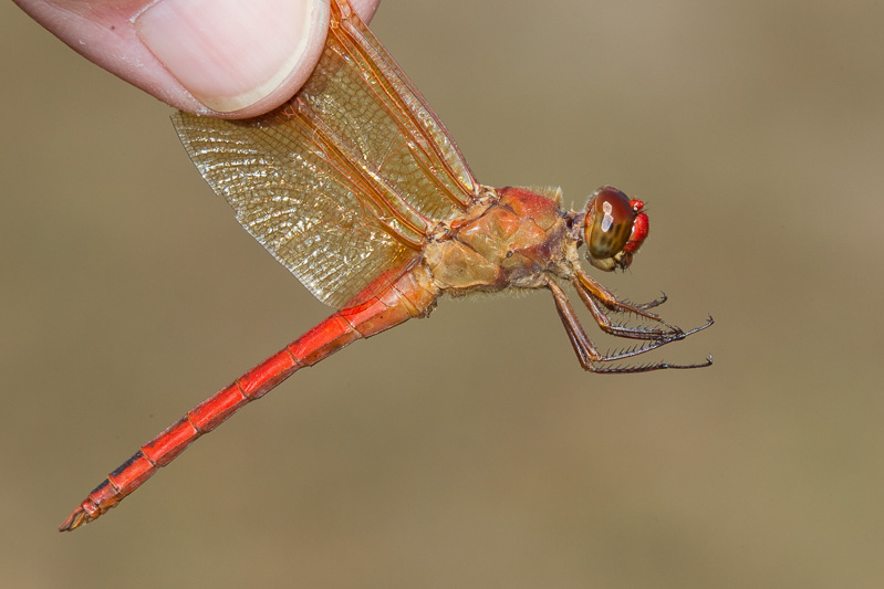 On the right is a fully mature male Needham's Skimmer. Note the brownish upper legs and perhaps the hint of the pale thumb on the side of the thorax. |