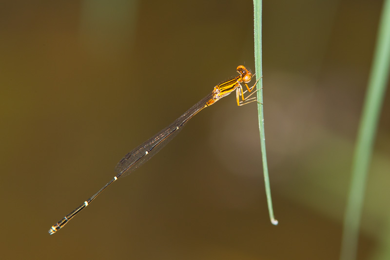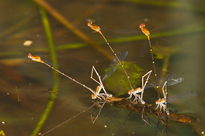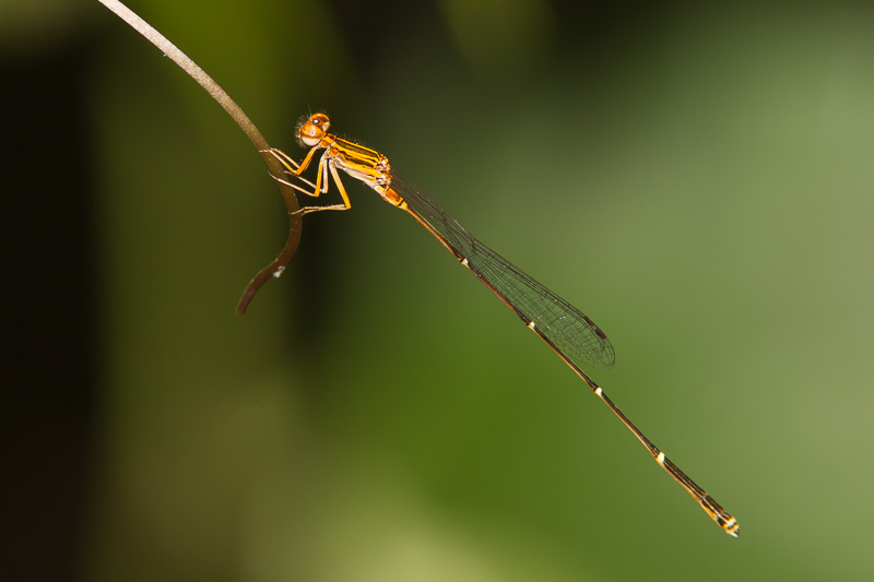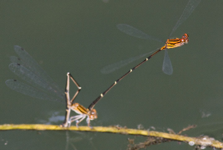 | Orange-striped Threadtail Protoneura cara pairs in tandem Rancho Primavera, near El Tuito, Jalisco, Mexico 13 April 2014 |