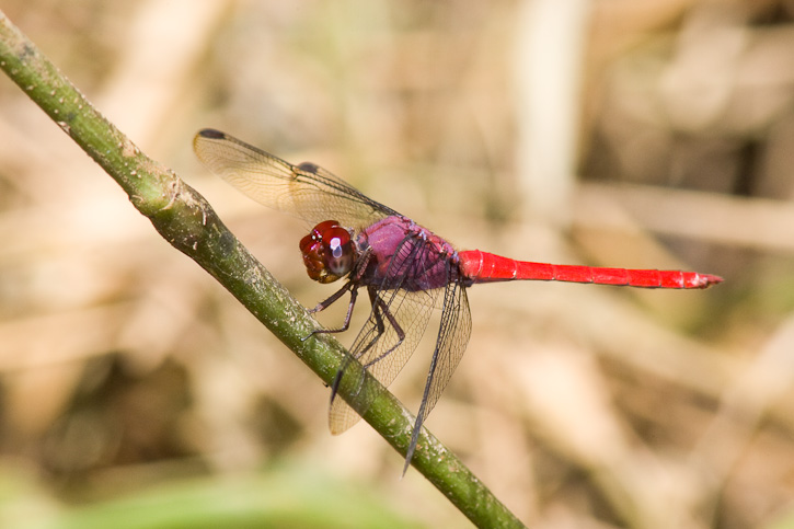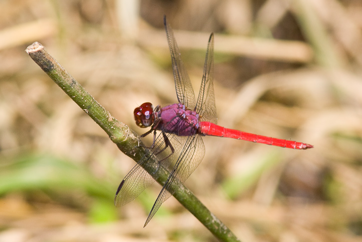 Orthemis schmidti is a widespread tropical species found in many areas of South America. The male in the top 3 images on this page was photographed along the Rio Sucusari, Departmento de Loreto, Peru, in July, 2006. These images were taken with a Canon EOS 1D Mark II and EF 300mm F/4 L IS lens and 2X extender and 580 flash. This dragonfly is similar in appearance to the Roseate Skimmer (Orthemis ferruginea) and Carmine Skimmer (Orthemis discolor) more familiar to U.S. observers. | ![]() |