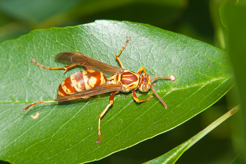 | The Paper Wasp resting on a leaf was taken in Austin, Travis Co., Texas, in June, 2009, with a Canon EOS 1D Mark III and an EF 300mm F/4 L IS lens and 2X extender. |