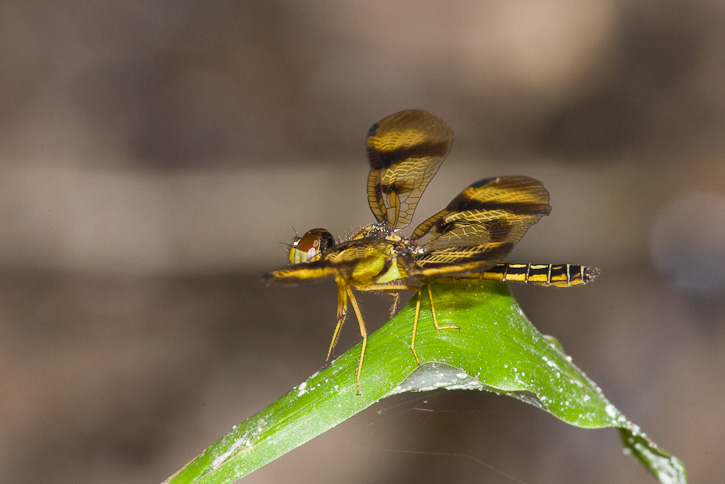 Perithemis thais is a member of the genus usually referred to as amberwings in the United States, but no common names have been assigned to the South American species as of yet. The male in the top 4 shots on this page was along a small stream in the Allpahuayo Mishana Reserve, Departmento de Loreto, Peru, in July, 2006. These images were taken with a Canon EOS 1D Mark II and EF 300mm F/4 L IS lens and 2X extender and 580 flash. | ![]() |
