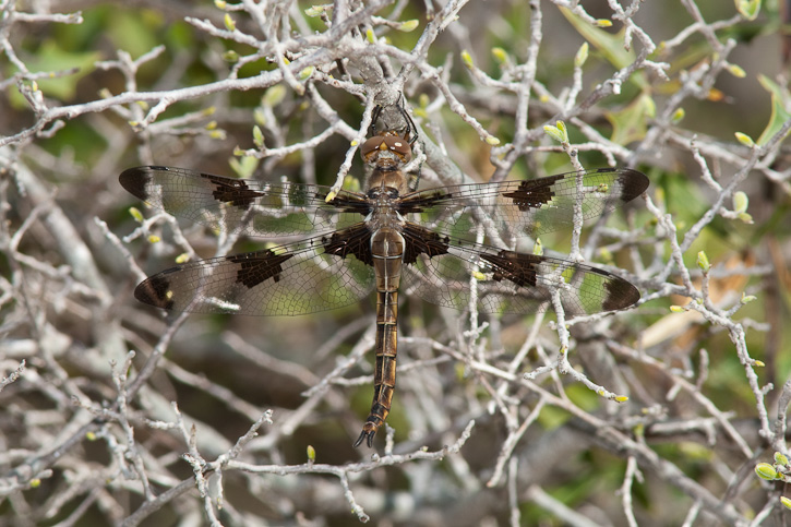 | The Prince Baskettail shown here was in Austin, Travis Co., Texas, in March, 2009. This was not a very attractive perch for photos, but typical of the perches often selected by this species. This image was taken with the same gear described previously. | ![]() |