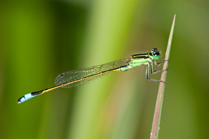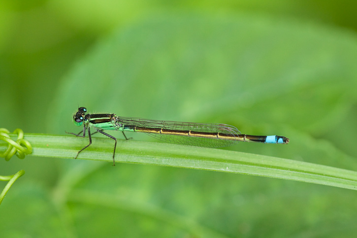 | The next 2 shots of Rambur's Forktail were taken in Tucson, Pima Co., Arizona, in May, 2008, with a Canon EOS 1D Mark III and EF 300mm F/4 L IS lens and 2X extender. The first image shows a typical male while the next image shows a female with male-like colors. | ![]() |