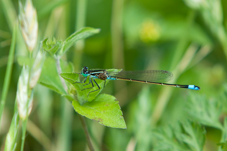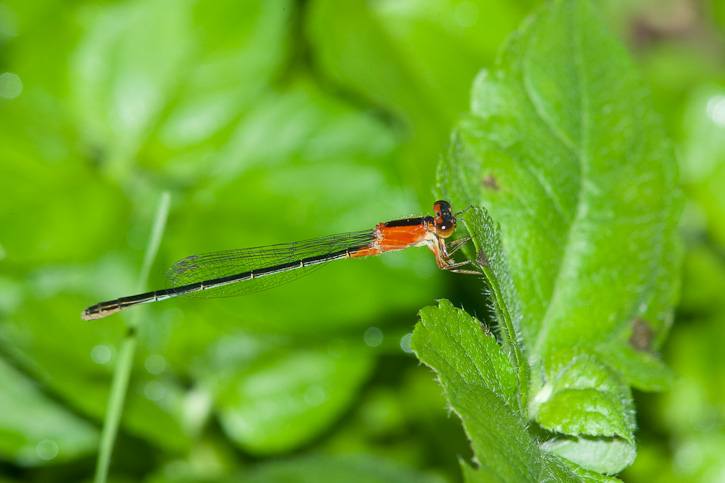 | The female Rambur's Forktail shown here is carrying a load of mites on its thorax. This image was taken with a Canon EOS 50D and an EF 70-200mm F/2.8 L IS lens and 2X extender and 580 flash in Austin, Travis Co., Texas, in May, 2009. | ![]() |