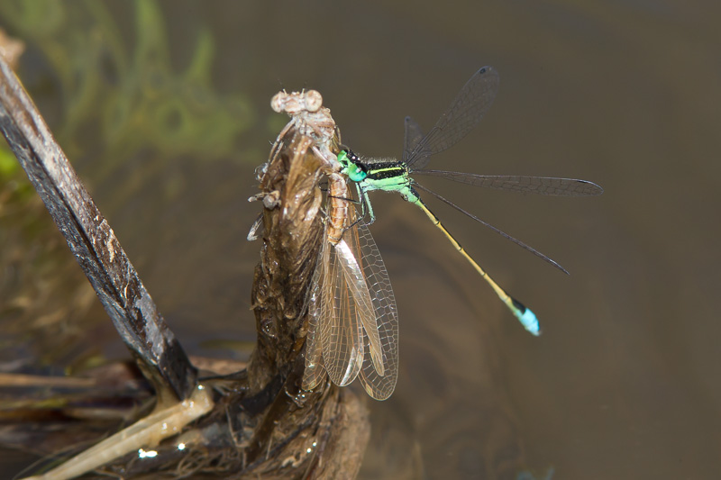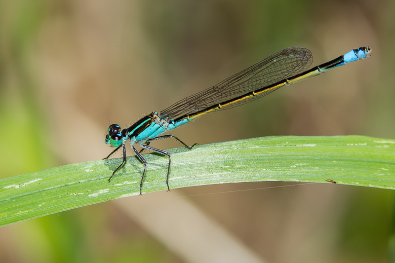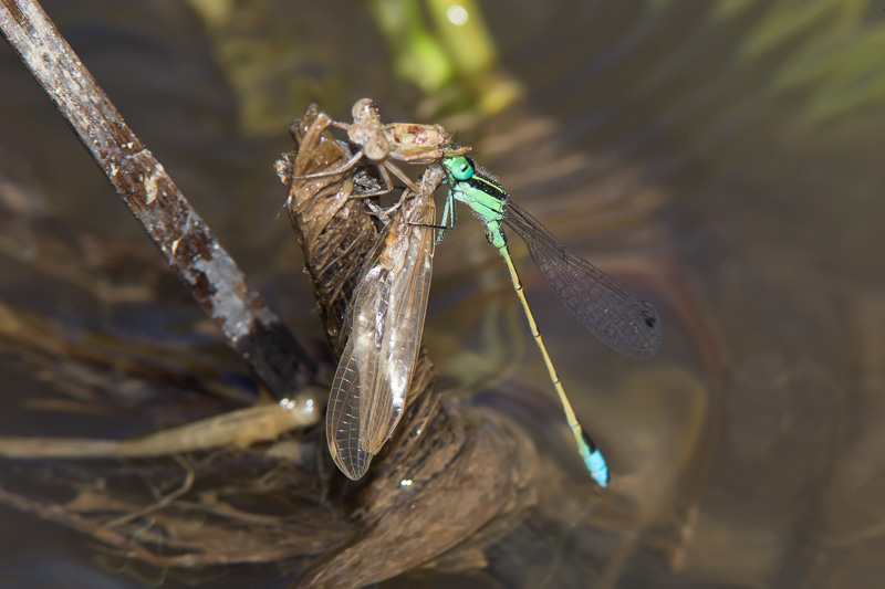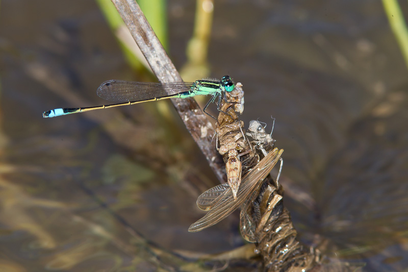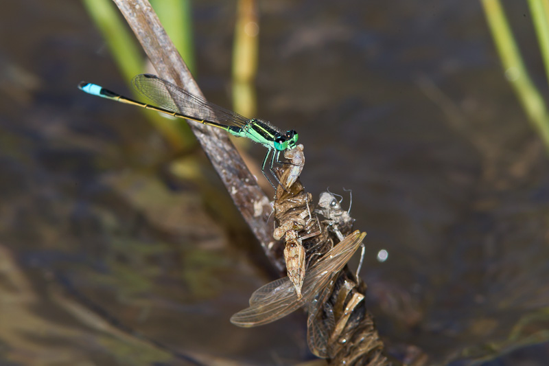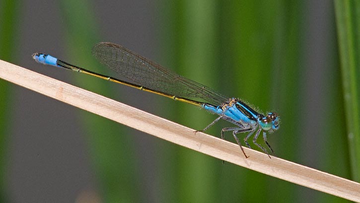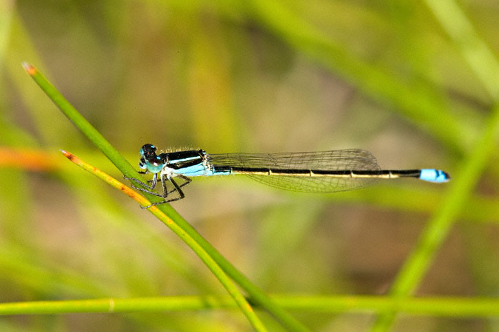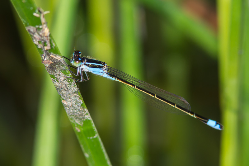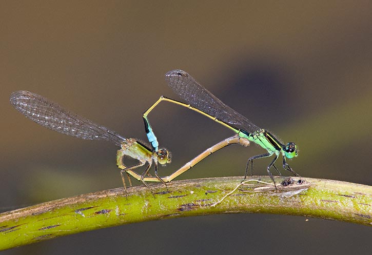 | The male Rambur's Forktail on the right was at the Lometa Reservoir, Lampasas Co., Texas, in September, 2011. This shot was taken with a Canon EOS 1D Mark IV and a Sigma 50-500mm lens and Canon 580 flash. | ![]() |