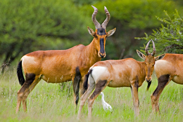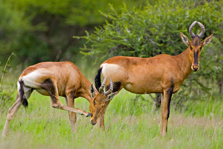 | The Red Hartebeest (Alcelaphus buselaphus) is one of the characteristic large mammals that one may see when visiting game parks in much of southern Africa. The images shown here were taken with a Canon EOS 1D Mark II and EF 500 mm F/4 L IS lens and 1.4X in January, 2006. The images were taken in the Polokwane Nature Preserve near Pietersburg, Limpopo Province, South Africa. | ![]() |