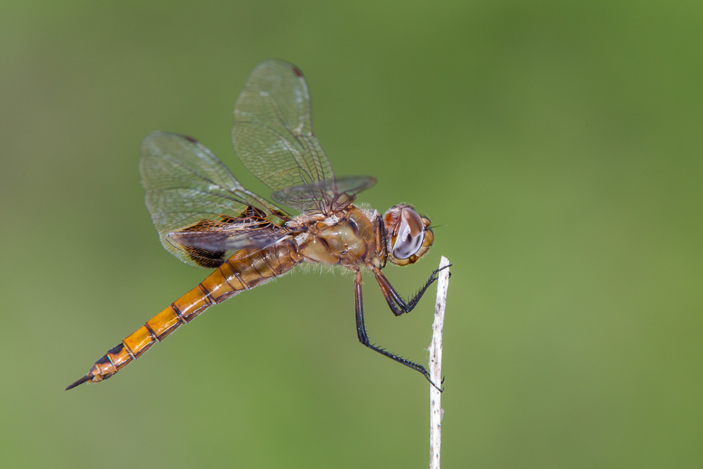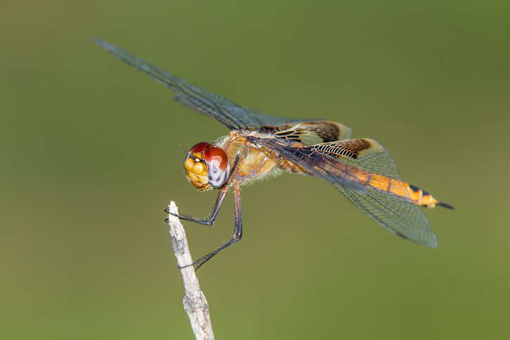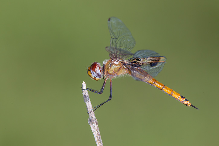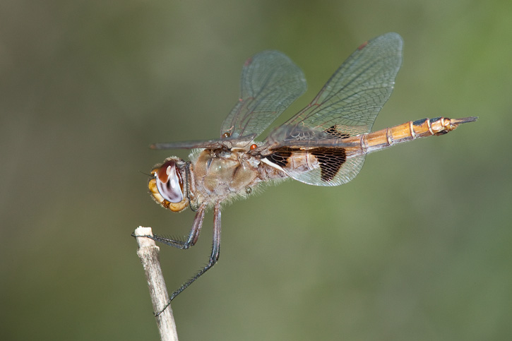 | The immature Red Saddlebags shown in the next two shots, were at Millwood Lake, Howard Co., Arkansas, in September, 2007. These two images were taken with a Canon EOS 1D Mark III and EF300mm F/4 L IS lens and 2X extender and 580 flash. | ![]() |