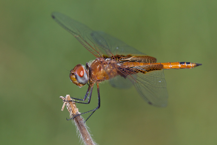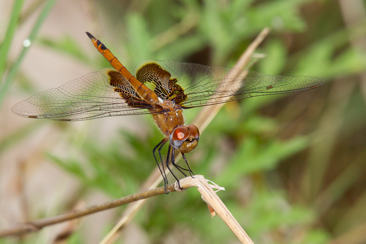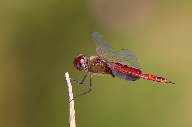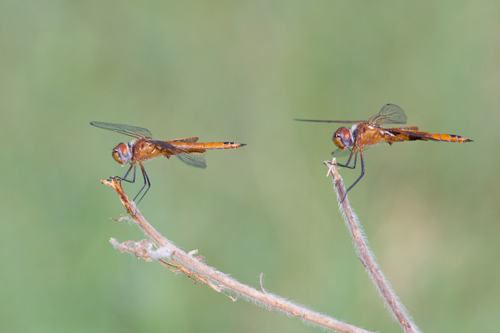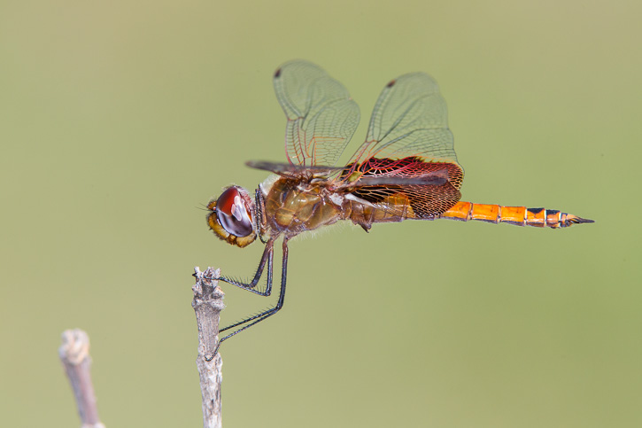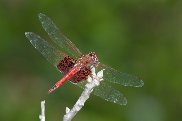 | The next three shots of Red Saddlebags were taken in Dripping Springs, Hays Co., Texas, in July, 2012, with a Canon EOS 1D Mark IV and an EF 300mm F/4 L IS lens and 1.4X extender and 580 flash. The first two shots show a female, while the 3rd shot shows a male. | ![]() |