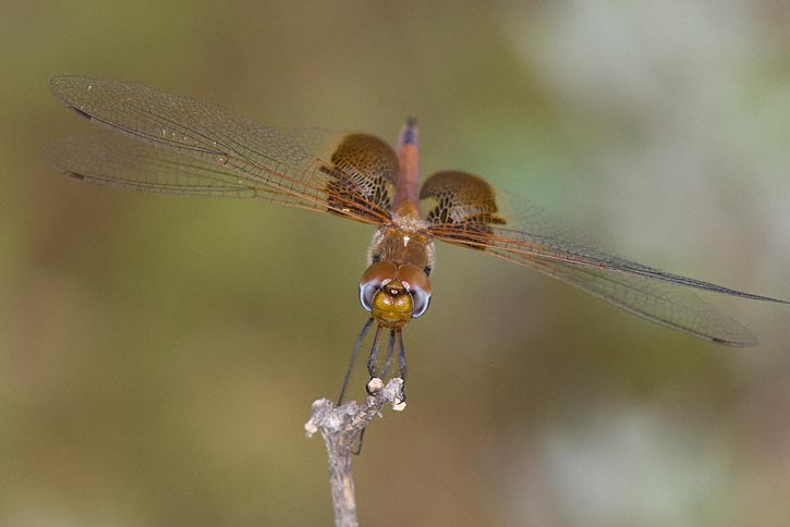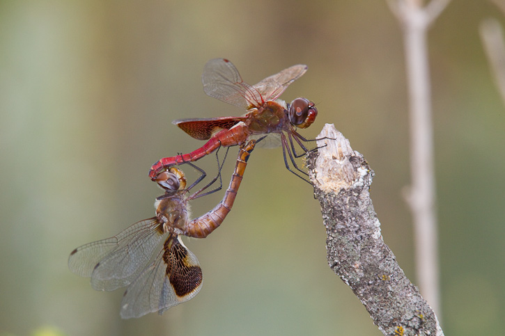 | The next 3 shots of Red Saddlebags (two shots of a male, and one shot from below of a female) were taken in Austin, Travis Co., Texas, in April, 2009 with a Canon 50D and EF 70-200mm F/2.8 L IS lens and 2X extender with a 580 flash. | ![]() |