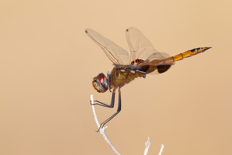 The young male Red Saddlebags here was shot in June, 2006, in Austin, Travis Co., Texas, with a Canon EOS 1D Mark II and EF 300mm F/4 L IS lens with a 2X extender and 580 flash.