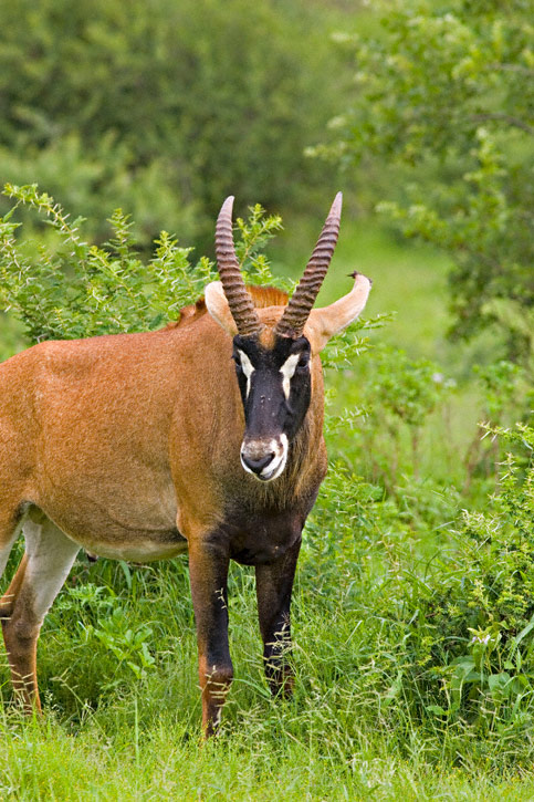 | The Roan (Hippotragus equinus) is one of the characteristic large mammals that one may see when visiting game parks in much of southern Africa. The image shown here was taken with a Canon EOS 1D Mark II and EF 500 mm F/4 L IS lens in January, 2006, in Mpumalanga Province, South Africa. | ![]() |