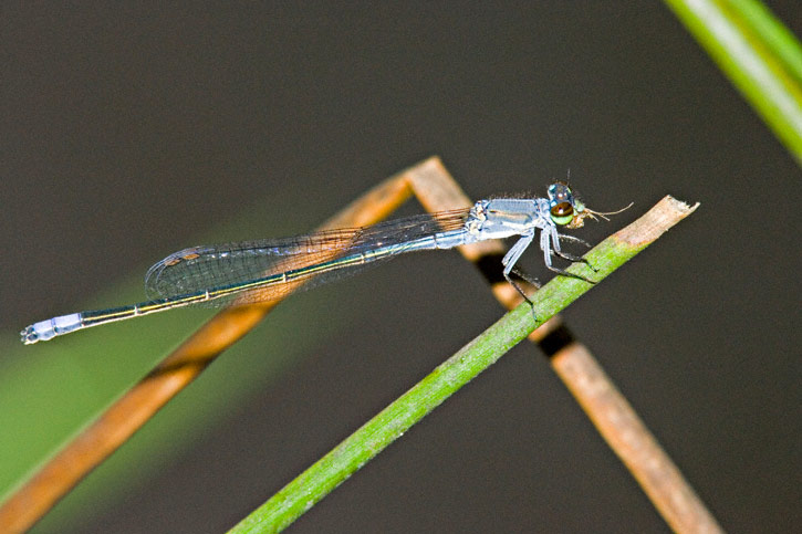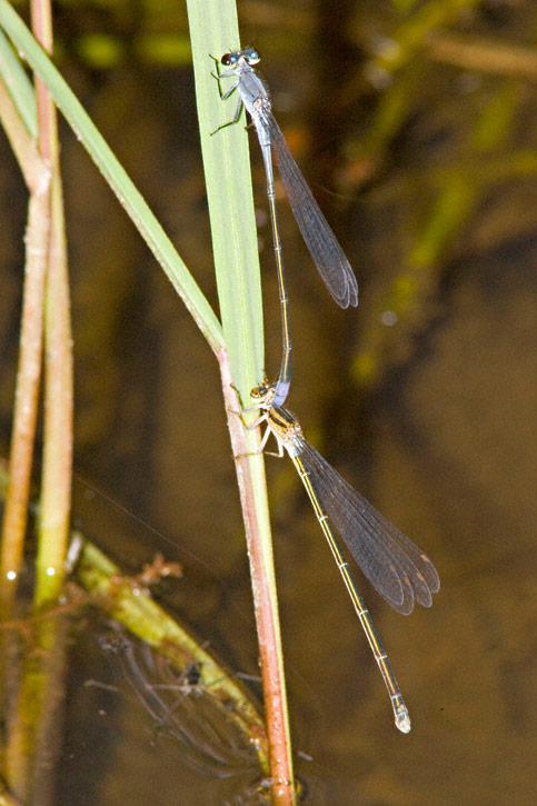 The Salisbury Sprite (Pseudagrion salisburyense) is a fairly common and widespread African species. The shots here of a male, female, and pair in tandem were taken on the Olifantspruit River near Nylstroom, Limpopo Province, South Africa in January, 2006 with a Canon EOS 1D Mark II and EF 300mm F/4 L IS lens and 2X extender with a 580 flash. | ![]() |