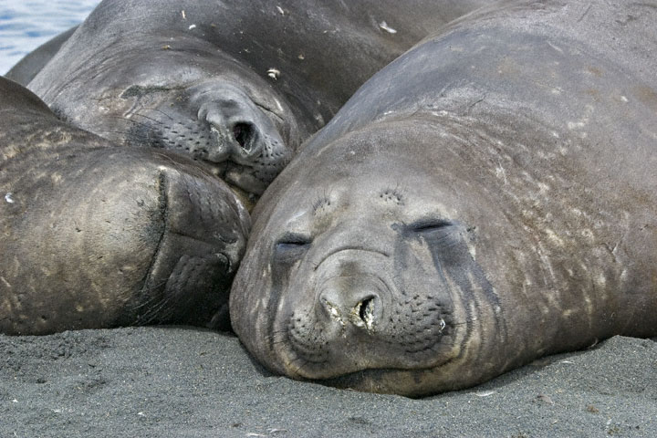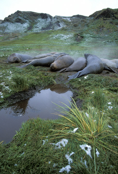 | The next two shots show animals resting on the beach at Gold Harbor, South Georgia, in January, 2002. |