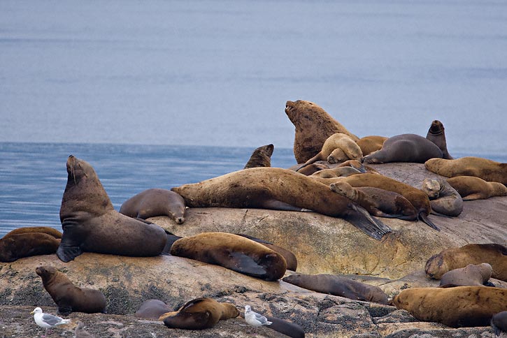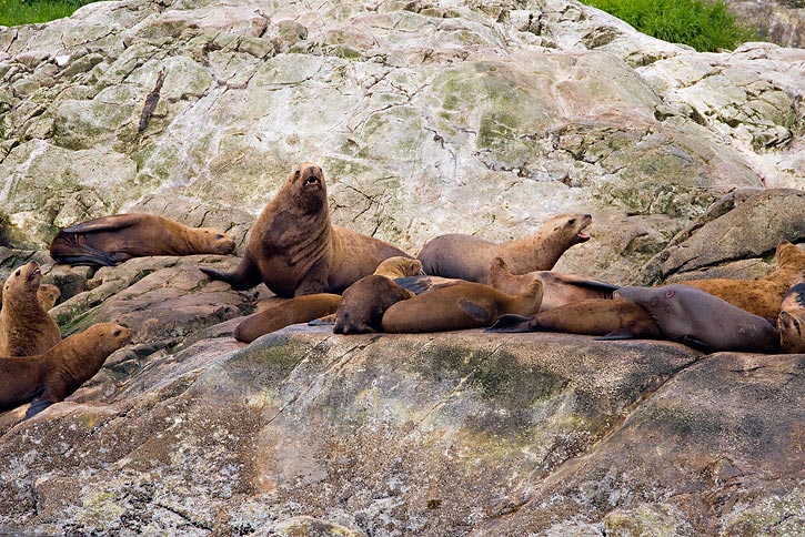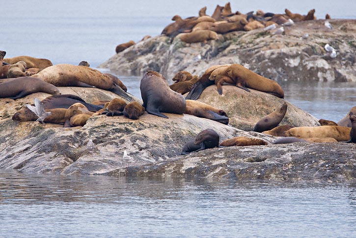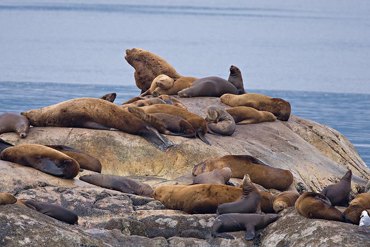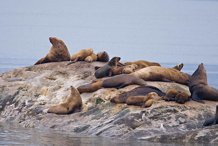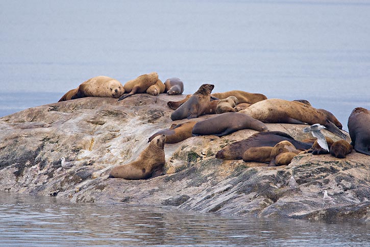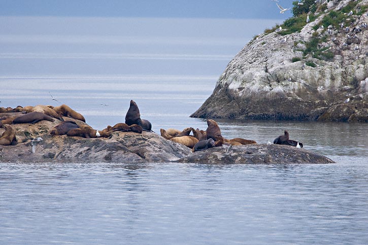 | The Steller's Sea Lion (Eumetopias jubatus) is the largest of the eared seals and it ranges along the rim of the north Pacific from California to Japan. The first 9 images on this page were taken at Glacier Bay National Park, Alaska, in August, 2008, from a passing boat with a Canon EOS 1D Mark III and EF 500mm F/4 L IS lens. | ![]() |